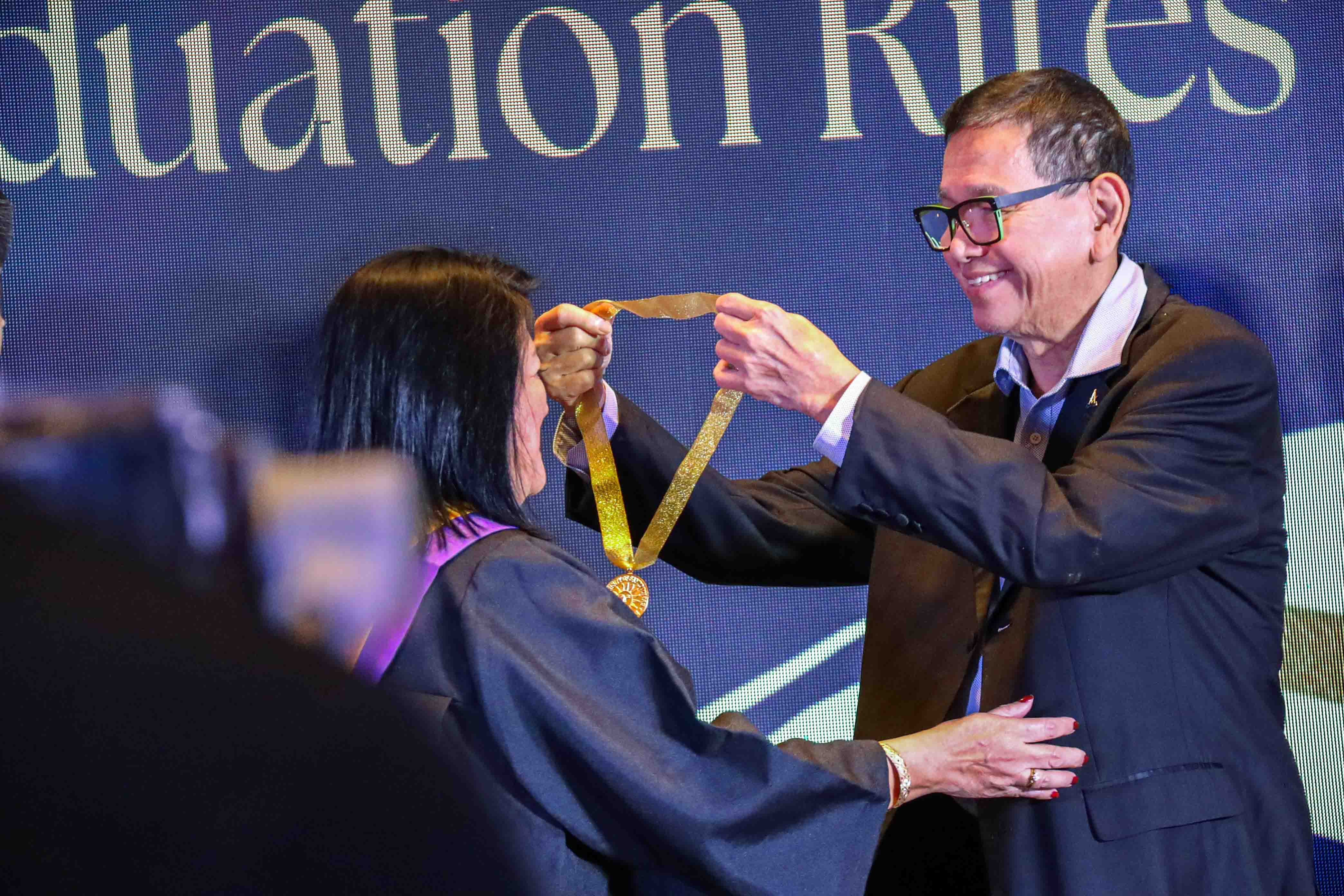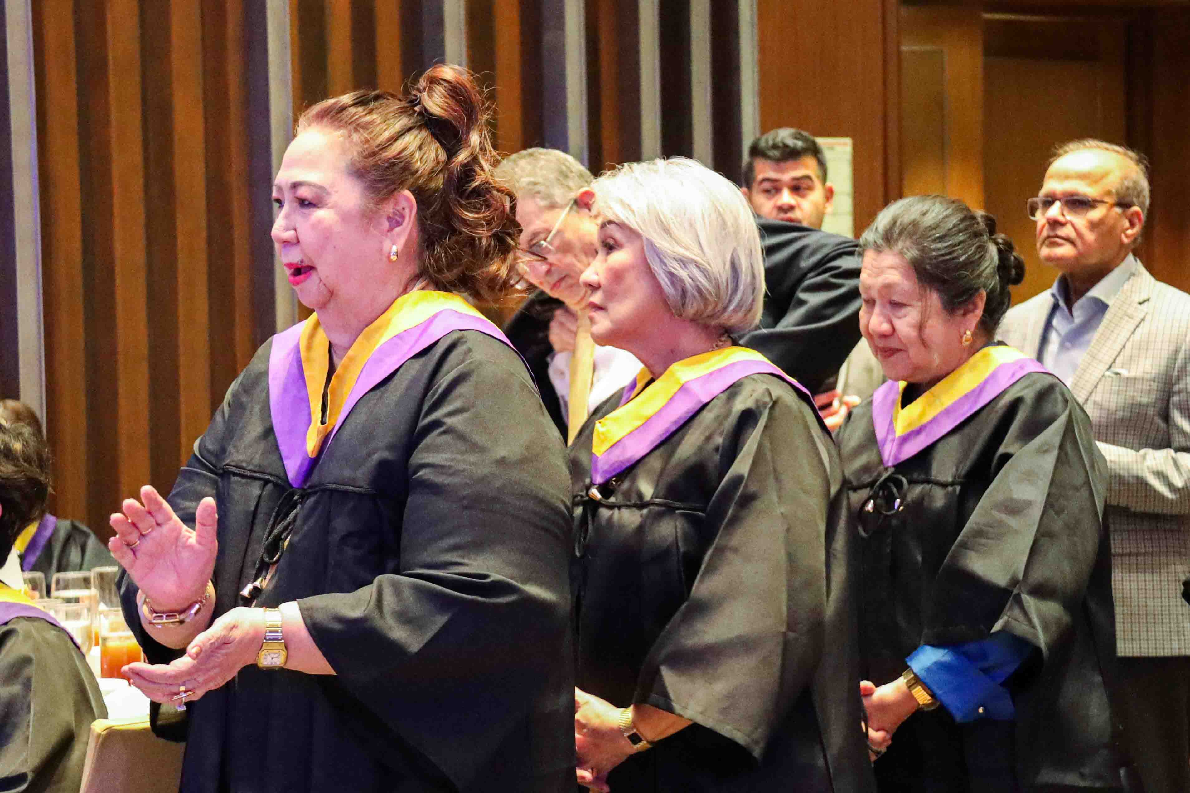 The evening was highlighted by solemn commemorative graduation rites, where alumni donned their academic robes for the awarding of the UST Jubilarian Medals, followed by a grand champagne toast to five decades of excellence.